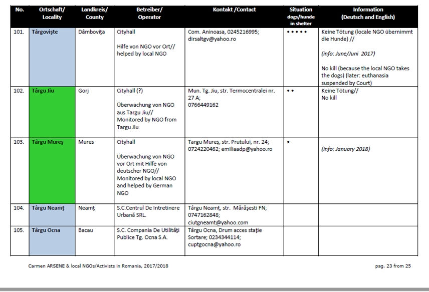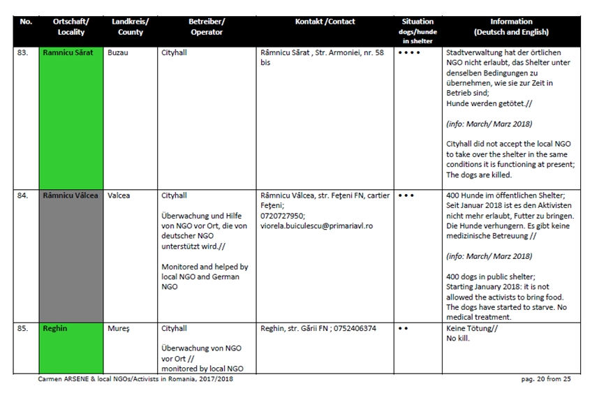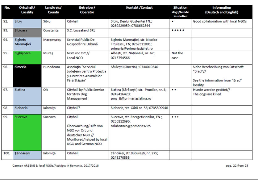 PS die im schwarzen Bereich aufgeführt sind in aller Regel im Besitz von korrupten Regierungen. Sie sind nicht zu einer Kooperation mit Vereinen bereit weil sie sehr viel Geld am Leid der Hunde verdienen, schmutziges Geld! Sie handeln gegen das rumänische Tierschutzgesetz.